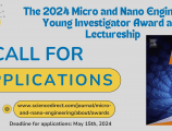 Call for Applications: The 2024 Micro and Nano Engineering (Elsevier) Young Investigator Award and Lectureship