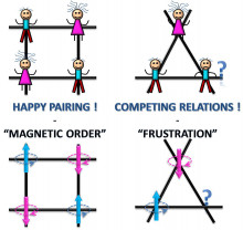 Frustration arises when a system cannot minimize all the pair-wise interactions simultaneously because of local geometric constraints. Competing or frustrated interactions extend beyond the condensed matter physics and into biological materials, as for example, nature has the ability to "resolve" frustrated interactions in order to carry out some targeted biological activity.